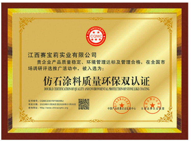 江西賽寶莉實業有限公司總部坐落于英雄城南昌,是一家集建筑涂料研發、生產、銷售、服務于一體的大型綜合性企業。專注涂料行業20余年,是專業的仿石涂料和藝術涂料制造商和供應商,擁有獨立研發實驗室,是CCTV央視廣告播出品牌、“國家高新技術企業”“中國建筑材料流通協會理事單位”。選擇賽寶莉,讓家更美麗。